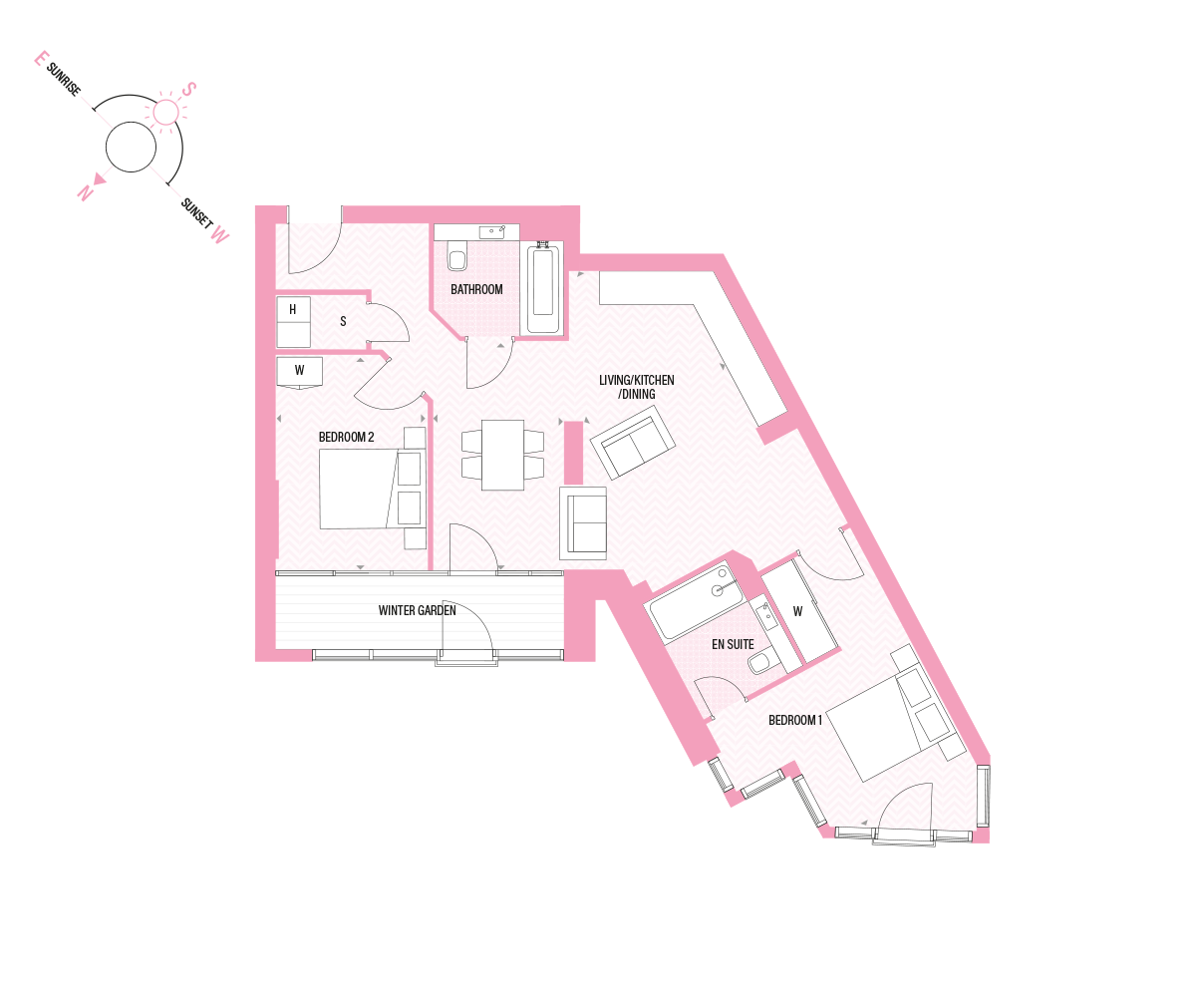 This stylish two bedroom apartment offers modern living with the incredible Weston Homes package – everything you’d expect and a lot that you wouldn’t! Featuring a contemporary open-plan living area, a designer kitchen with integrated appliances, a boiling water tap and a stone worktop. The hotel-style bathroom and en-suite with Smart technology has integrated vanity storage, a mirror with de-mist feature and heated towel rail. The principal bedroom includes a mirrored fitted wardrobe and luxurious flooring is included throughout.